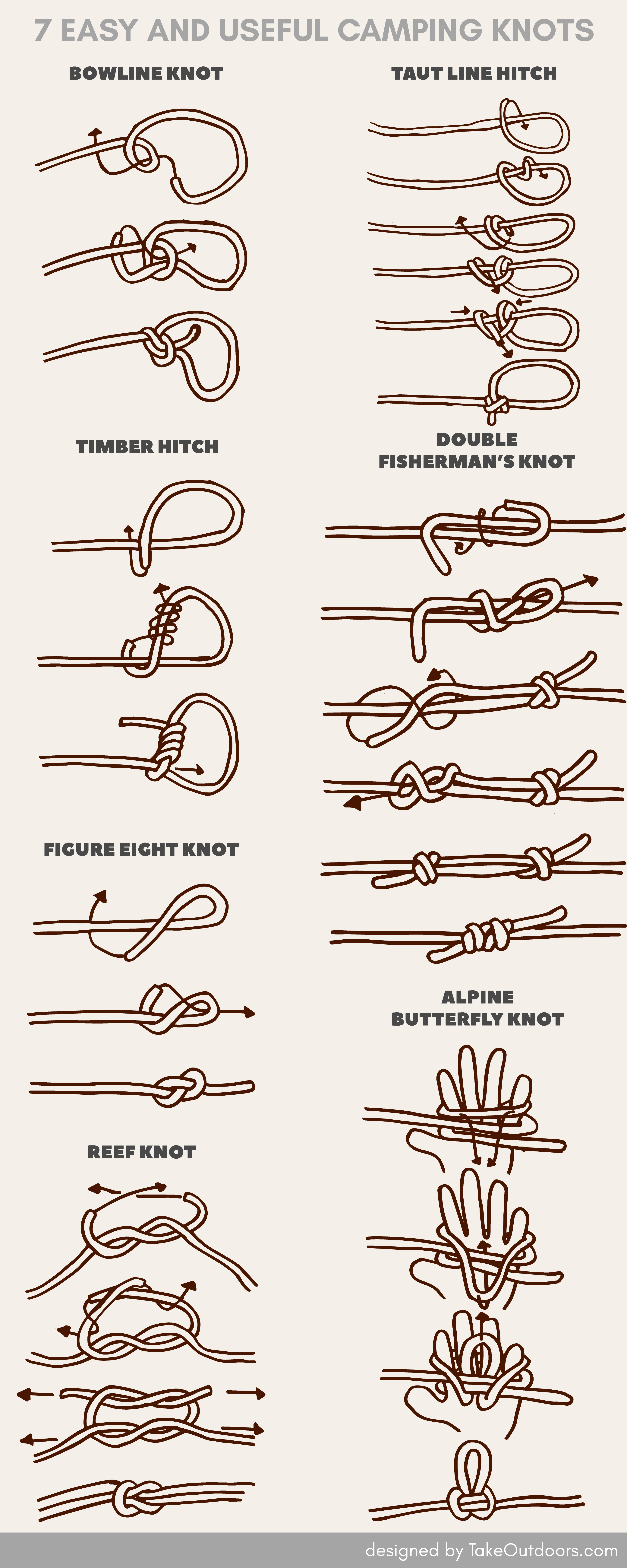 If you don’t want to memorize the steps to tie the knots, we’ve prepared a poster for you as a reference. Print it out, bring it to your trip and feel the power of the knots!
